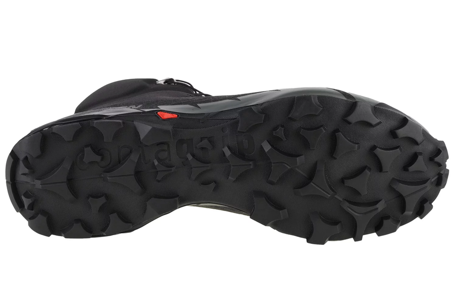 - Mud Contagrip: Подошва с глубокими, широкими и острыми разнонаправленными шипами (шевронами) для максимального сцепления на мягких поверхностях.